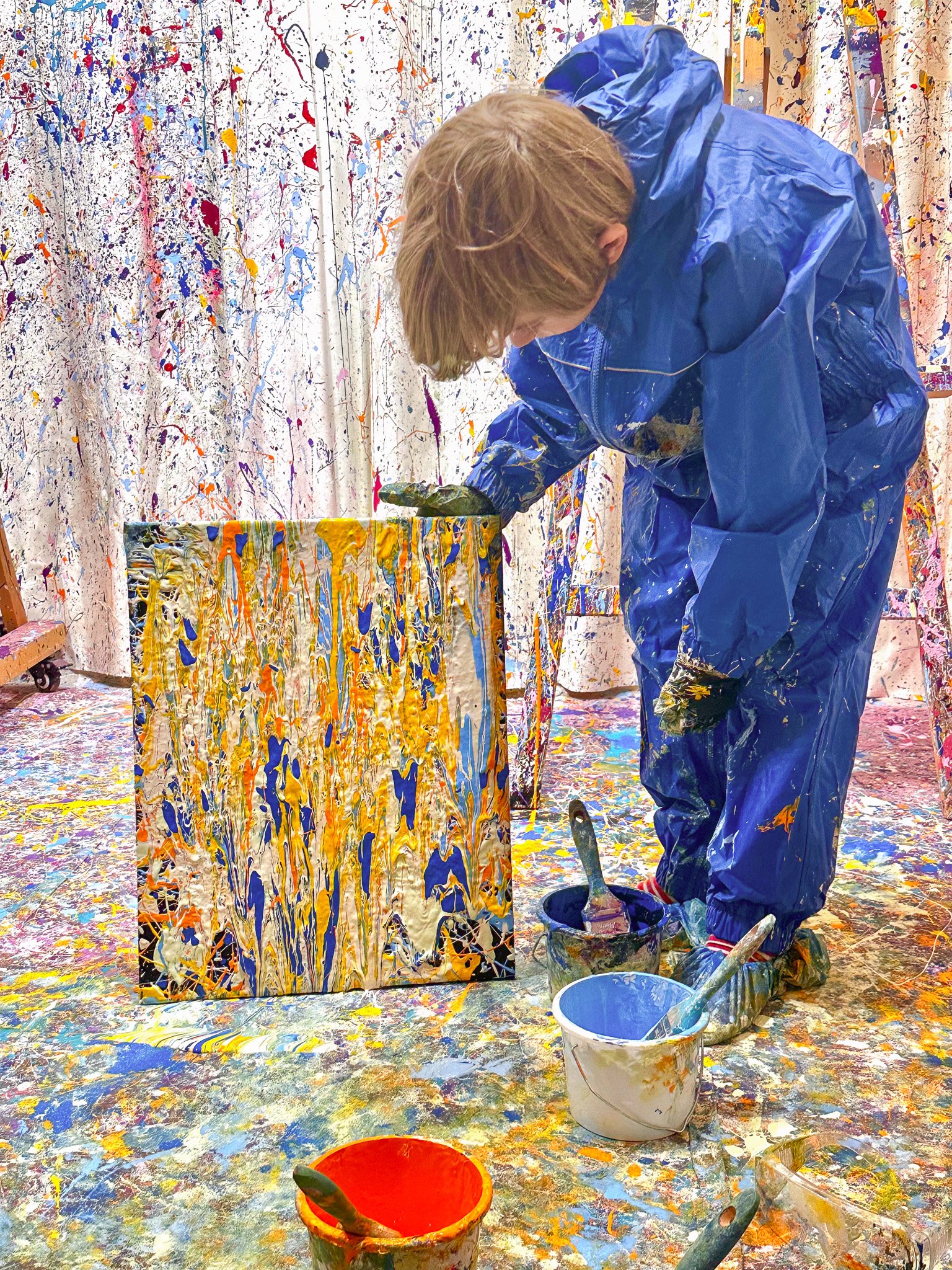 Imagine arriving at a real artist’s studio, where everything is ready for a hands-on art adventure. Kids will be fully kitted out with protective waterproof overalls, shoe covers, gloves, and safety glasses – so they’re free to get messy and creative without any worries.