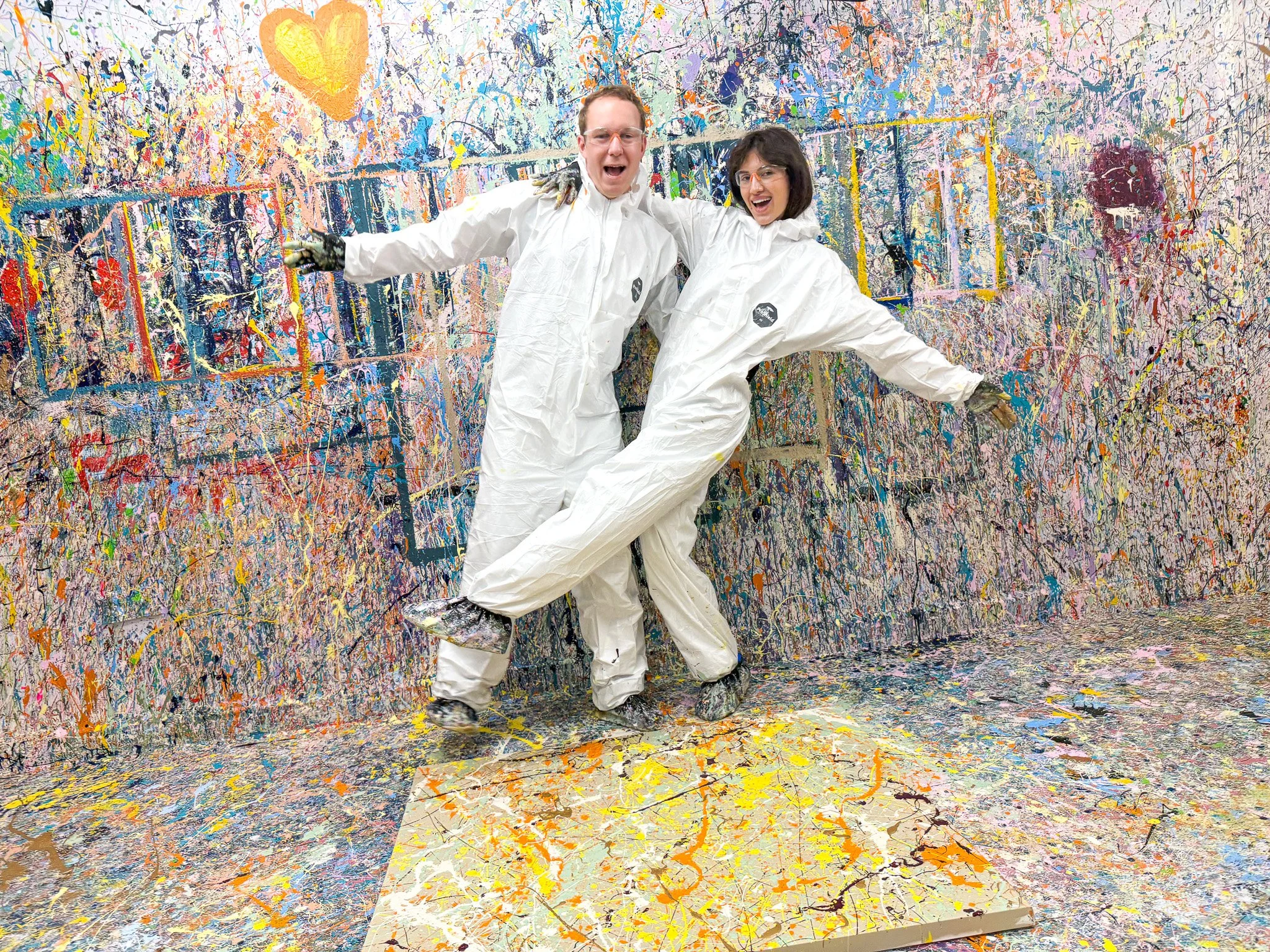 You'll have the freedom to splatter paint at your own pace, but if you'd like guidance, a professional artist will be there to offer tips and assistance whenever needed.